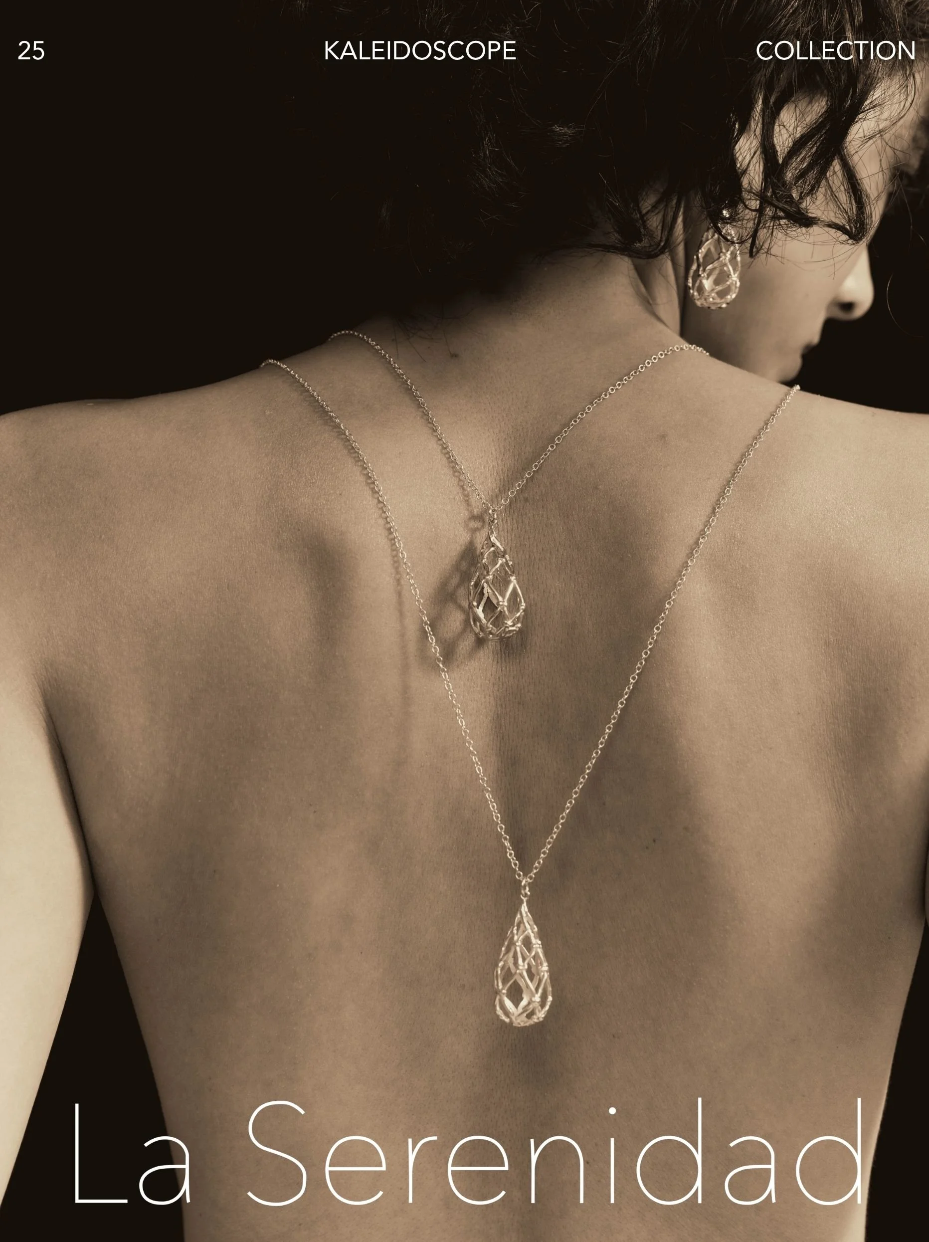 La Serenidad Vol.7「萬華鏡」,汲取碎片化光影與幾何對稱的結構,以點、線、面的鏡像重複堆疊,讓菱形自序列中浮現,成為本系列的核心設計。承襲品牌的手作堅持,重現Art Deco華麗而嚴謹的精神:細膩的金屬編織、稜角分明的切割雕琢、隱密而精準的寶石鑲嵌。萬華鏡,於古典工藝與現代設計共生,是對多彩年代的致敬,也是質樸的傳承與摩登華彩的延續。